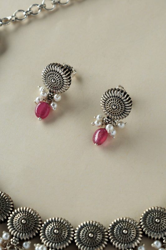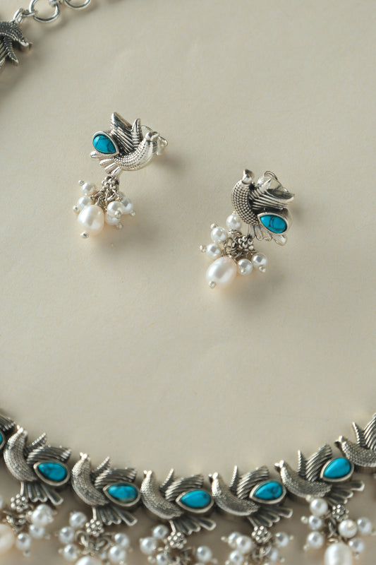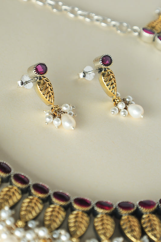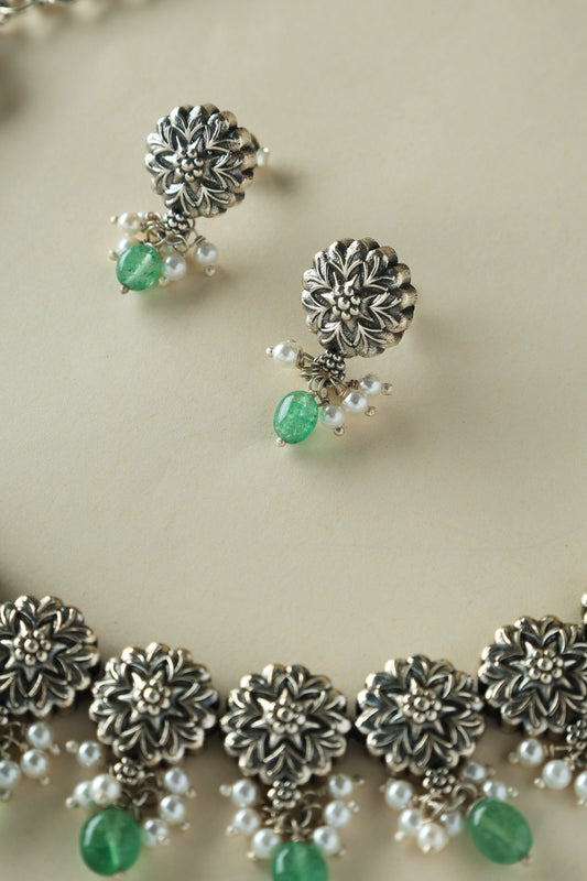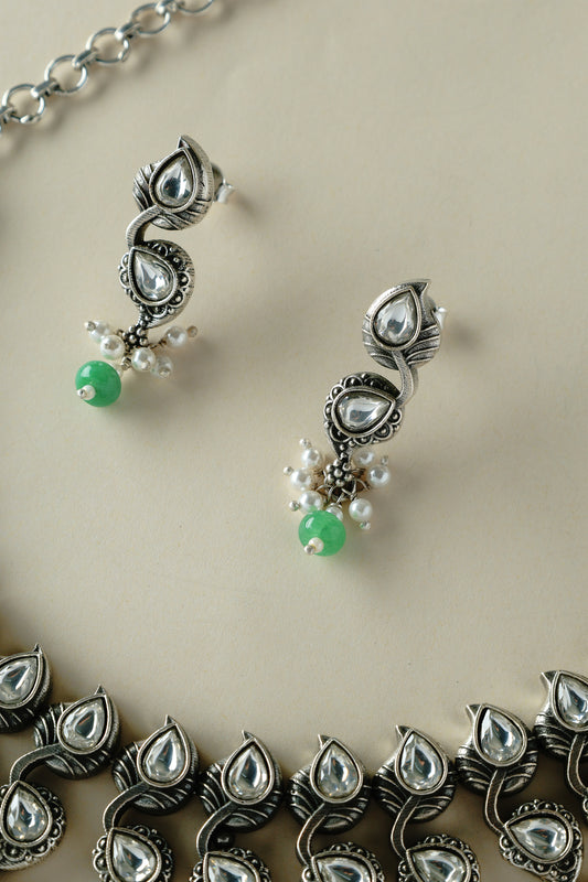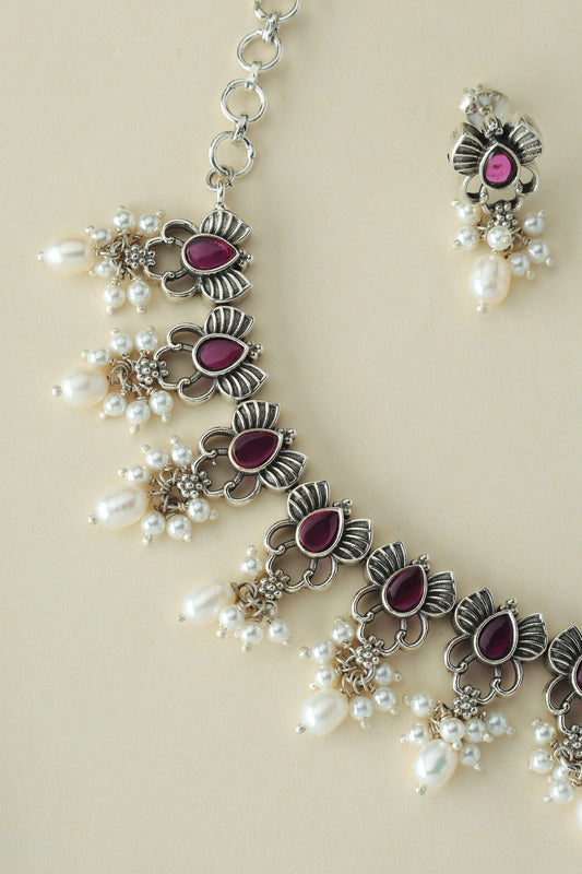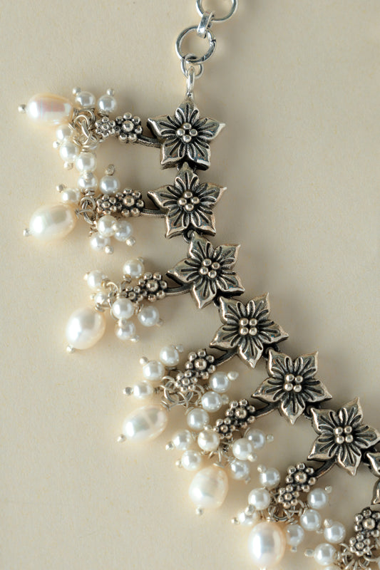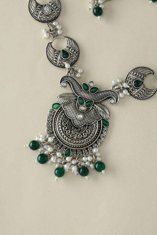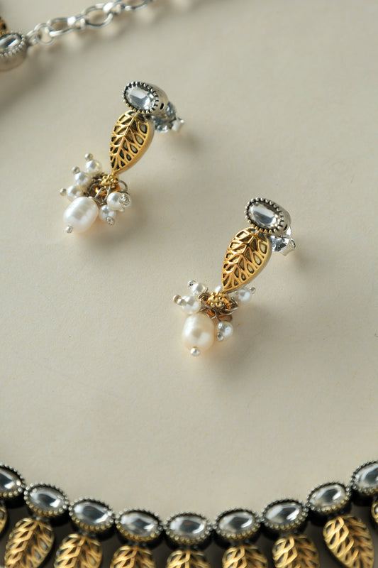 Silver Dual Tone Kempstone Pearls Necklace Set