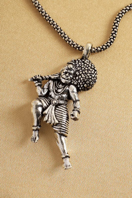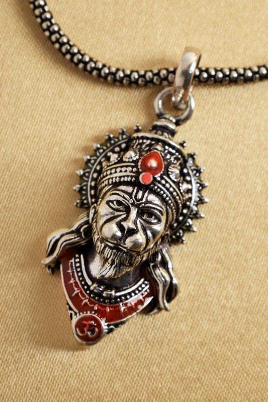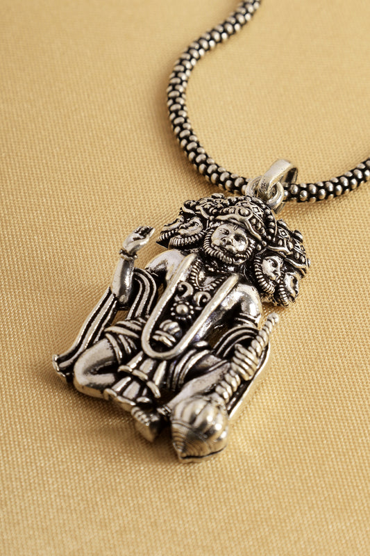 3D Panchmukhi Hanuman Silver Pendant Chain