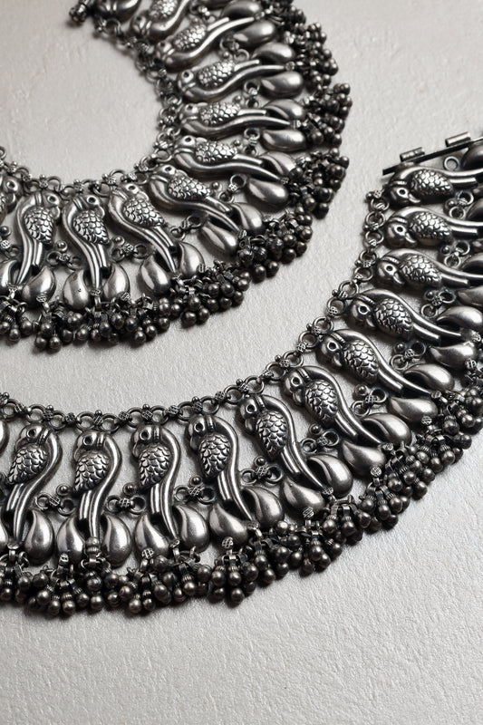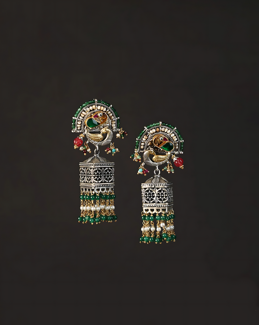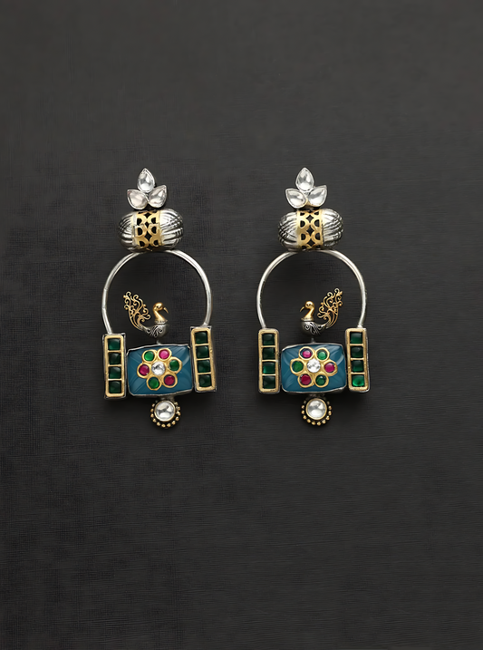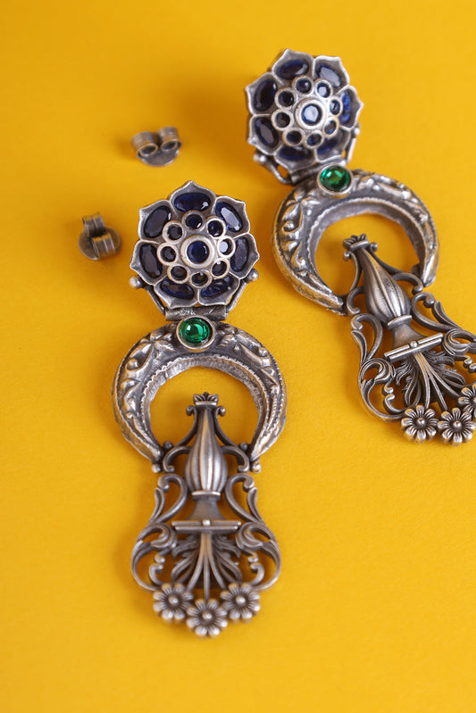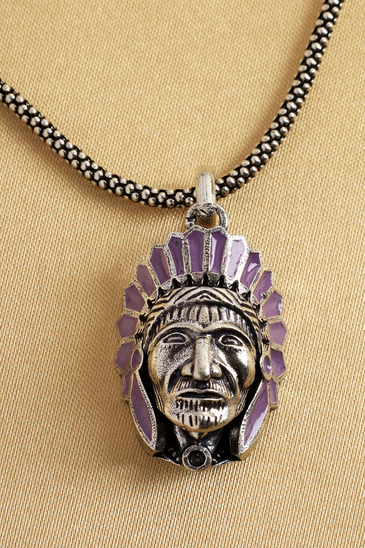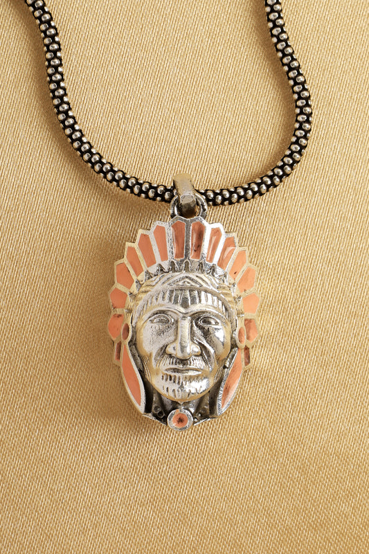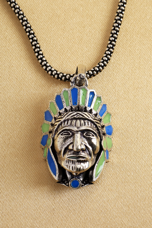 3D Blue Green Anglo Indian Silver Pendant Chain