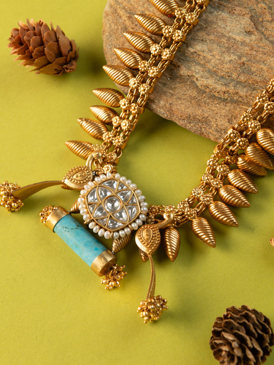 Turquoise 18k Gold Plated Silver Kundan Necklace