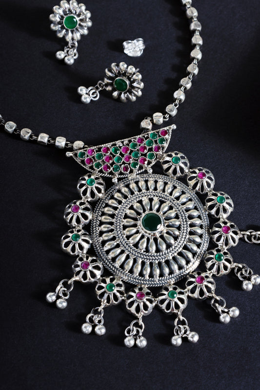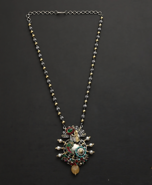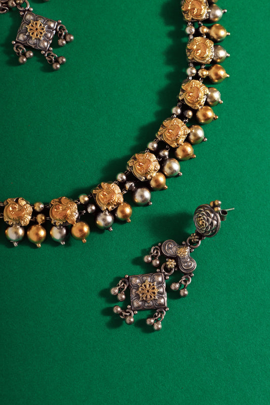 Dual Tone Beaded Silver Necklace Set