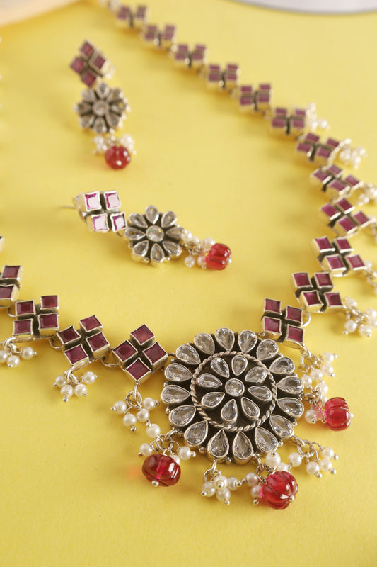 Doli Floral Cut Stone Necklace Set