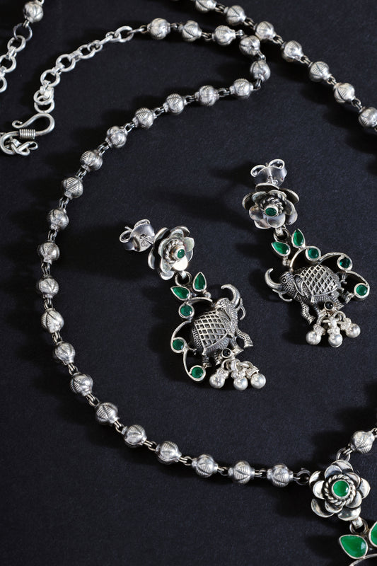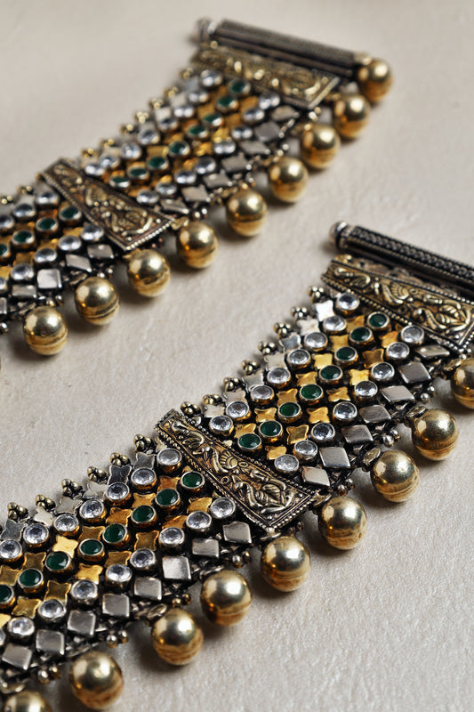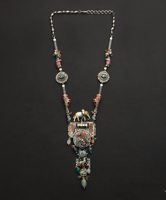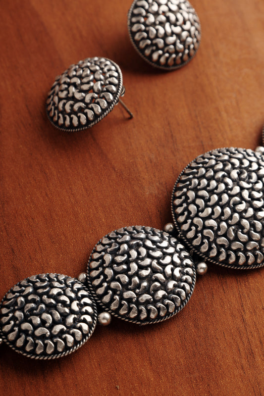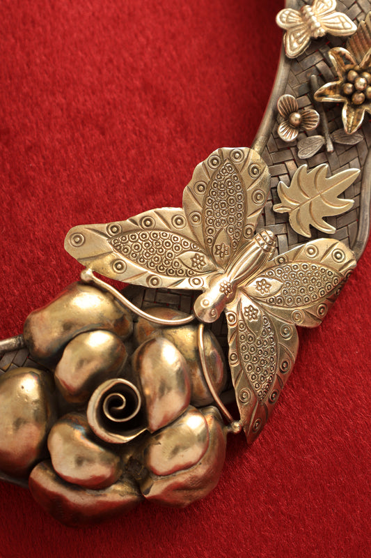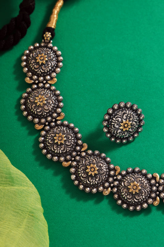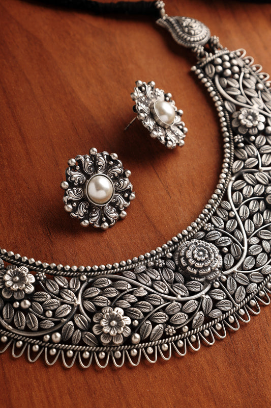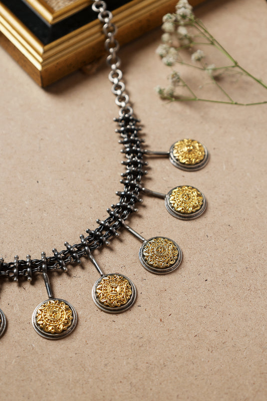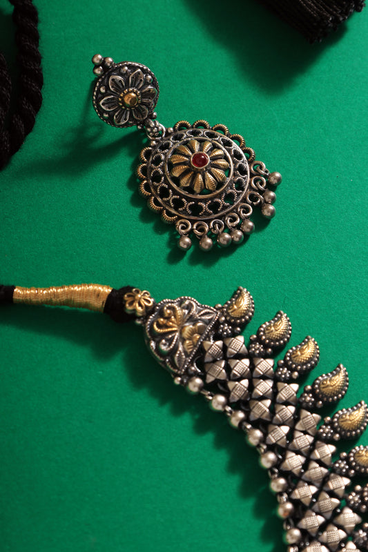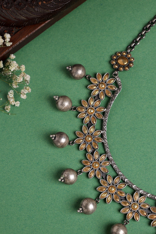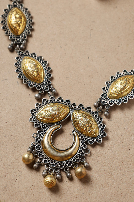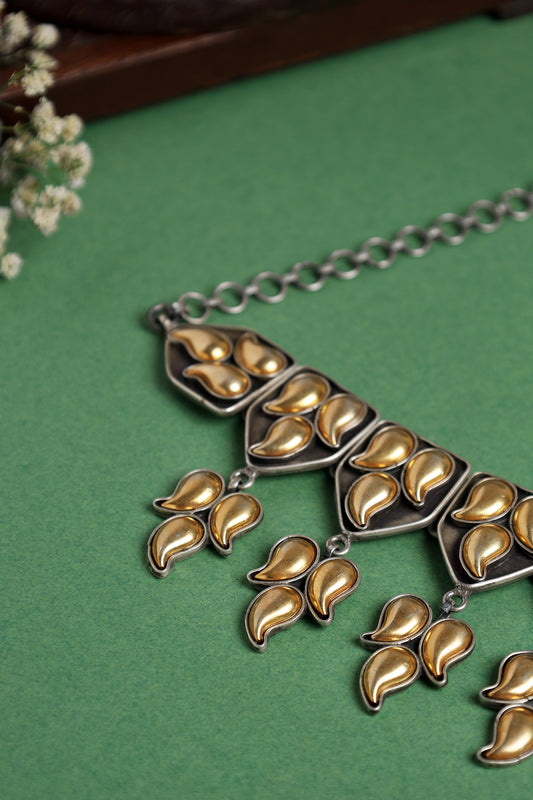 Dual Tone Flora Weaved Silver Hasli Necklace