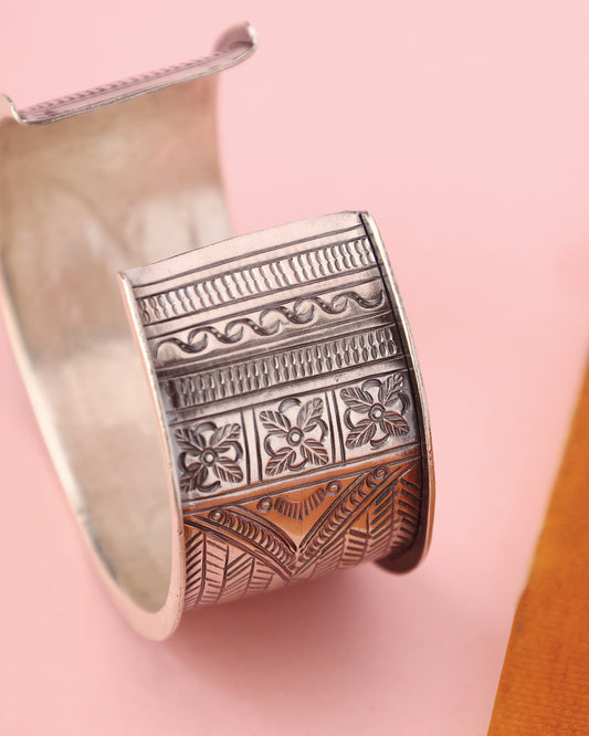 Temple Floral Silver Bangles