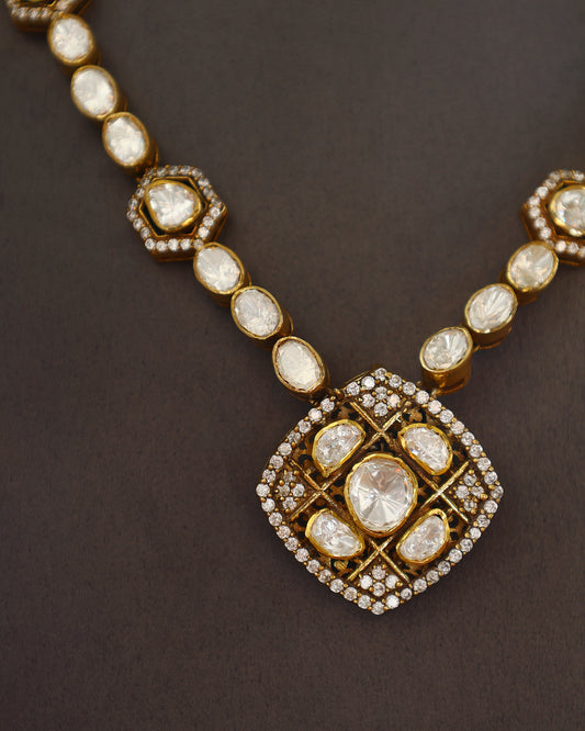Handcrafted Necklace Set in 92.5 Silver with Moissanite