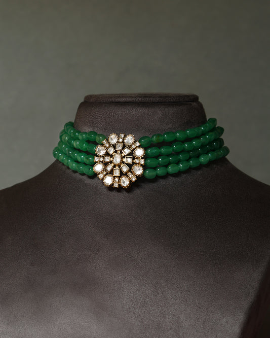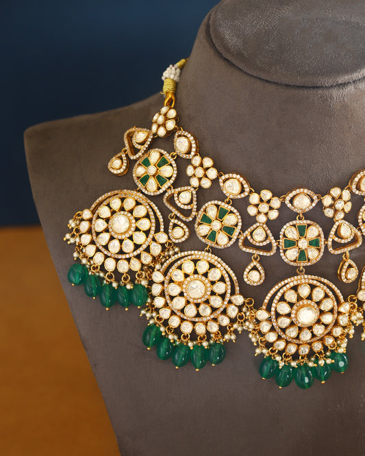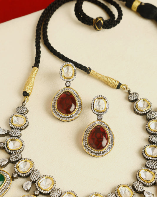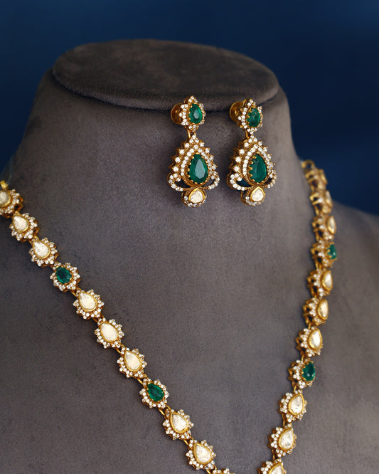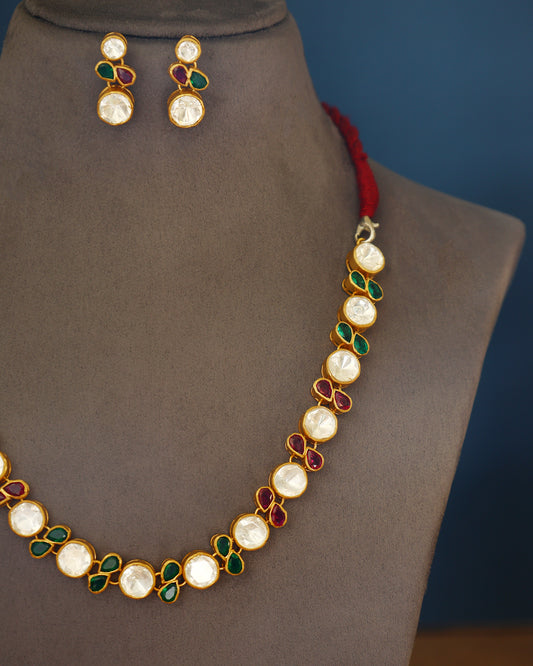 Handcrafted Necklace Set in 92.5 Silver with Kempstones