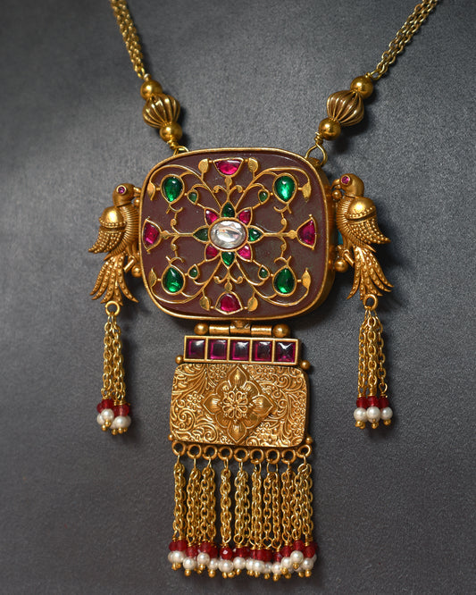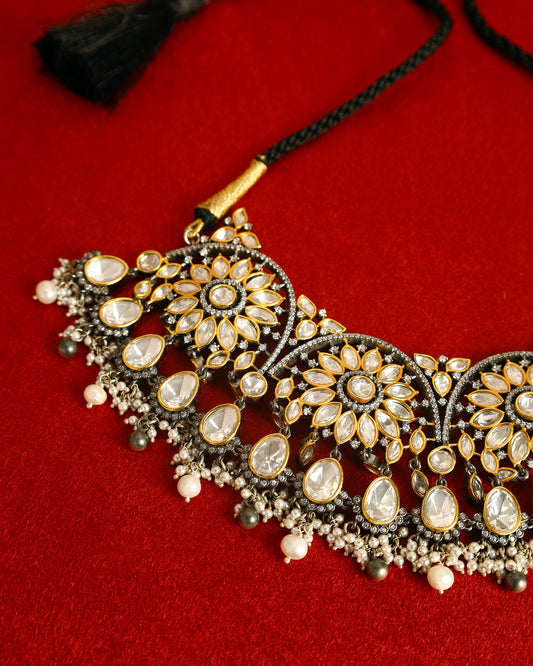 Handcrafted Necklace in 92.5 Silver with Kundan