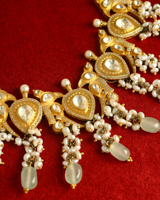 Handcrafted Necklace in 92.5 Silver with Pearls, Kundan
