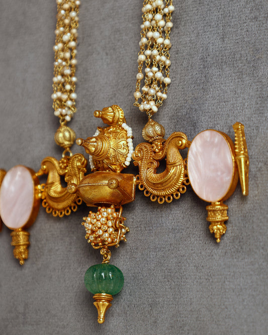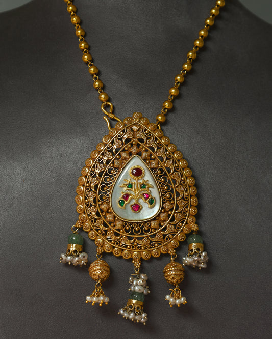 Handcrafted Necklace in 92.5 Silver with Mother of Pearl, Kundan