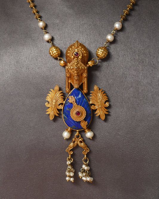 Handcrafted Necklace in 92.5 Silver with Lapis, Pearls