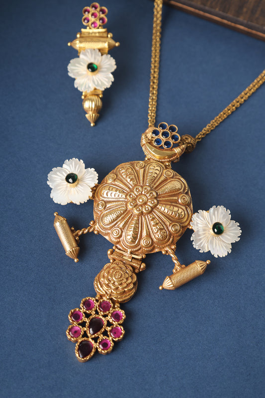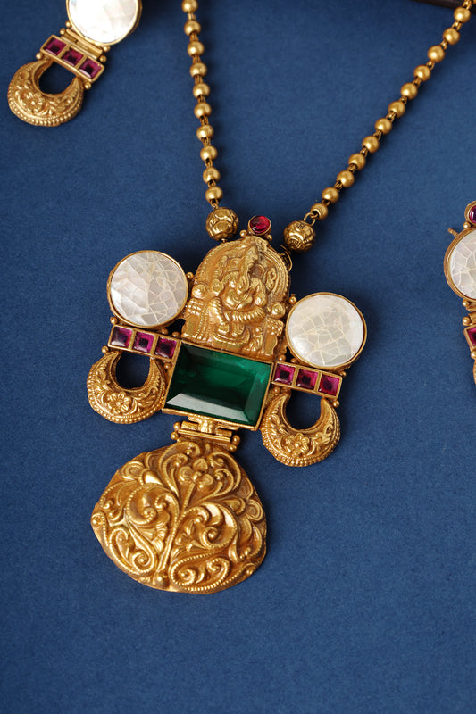 Mother of Pearl Temple Long Pendant Necklace Set