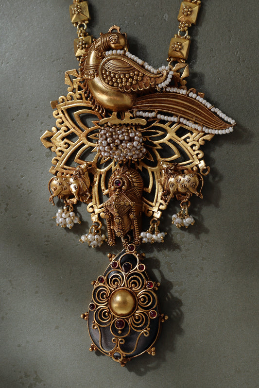 Peacock Cow Temple Pendant Necklace