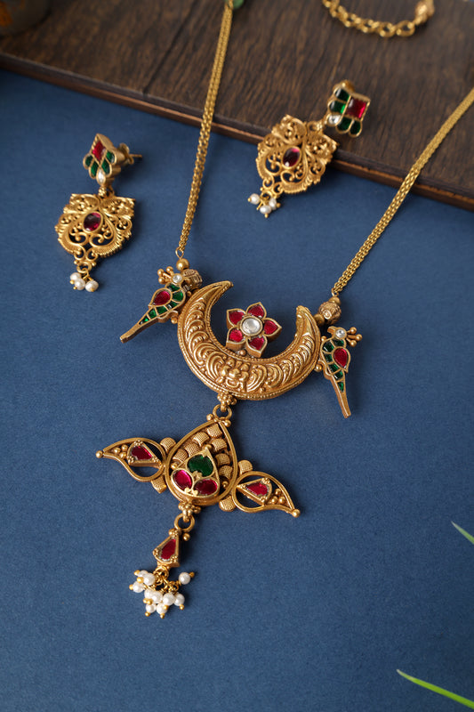 Kundan Bird Pendant Neckalce Set