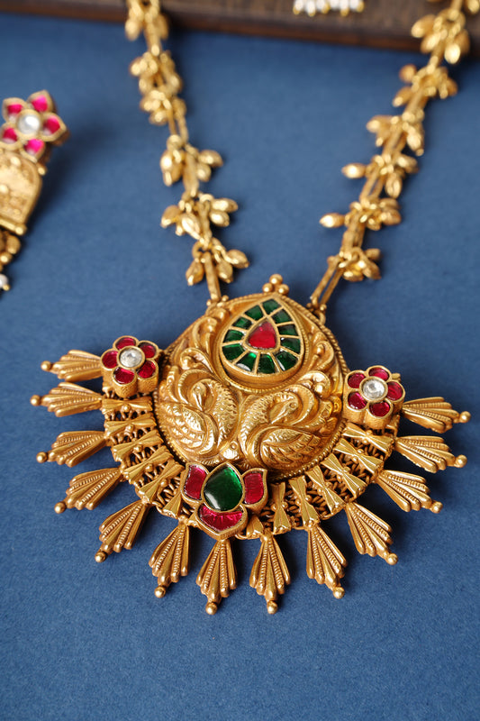 Fusion Temple Kundan Peacock Necklace