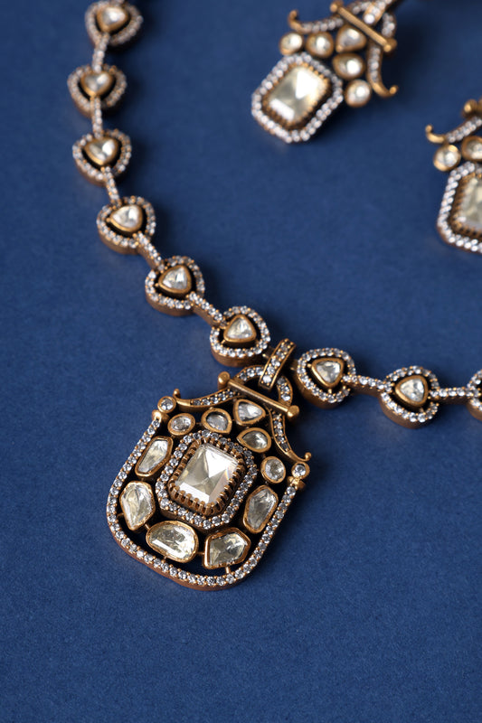 Moissanite Gold Finish Necklace Set