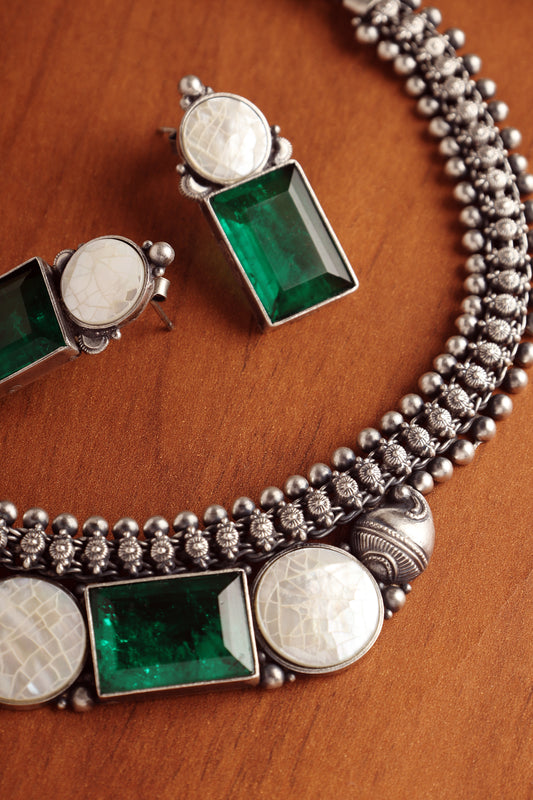 Green Mother of Pearl Temple Necklace Set