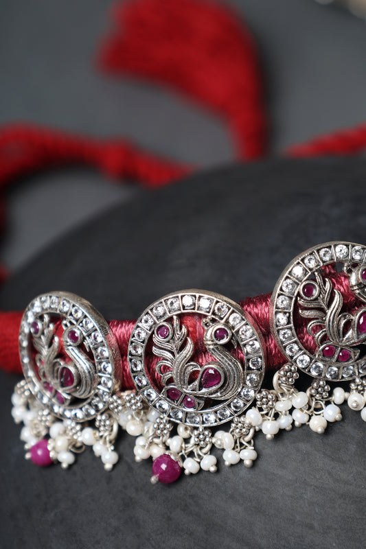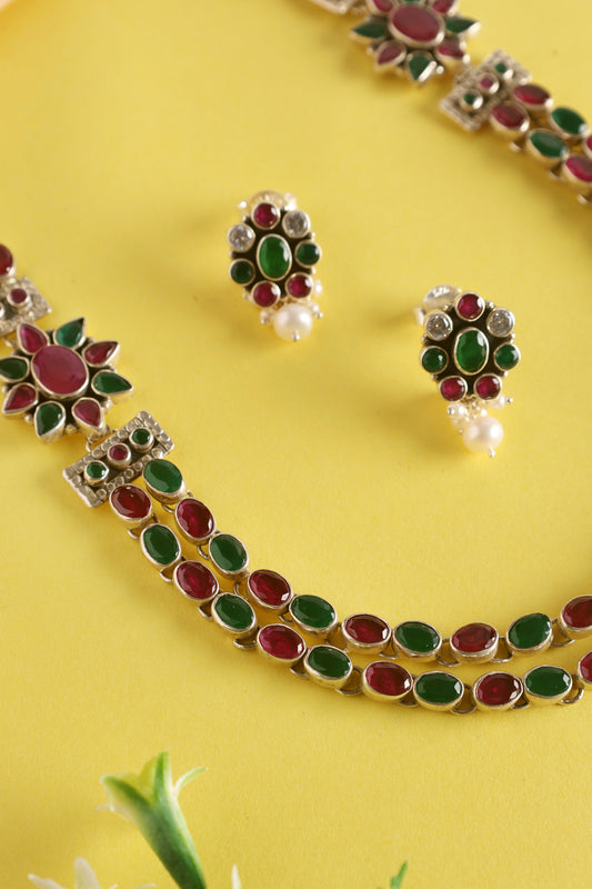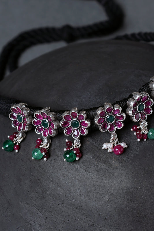 3D Blue Green Anglo Indian Silver Pendant Chain