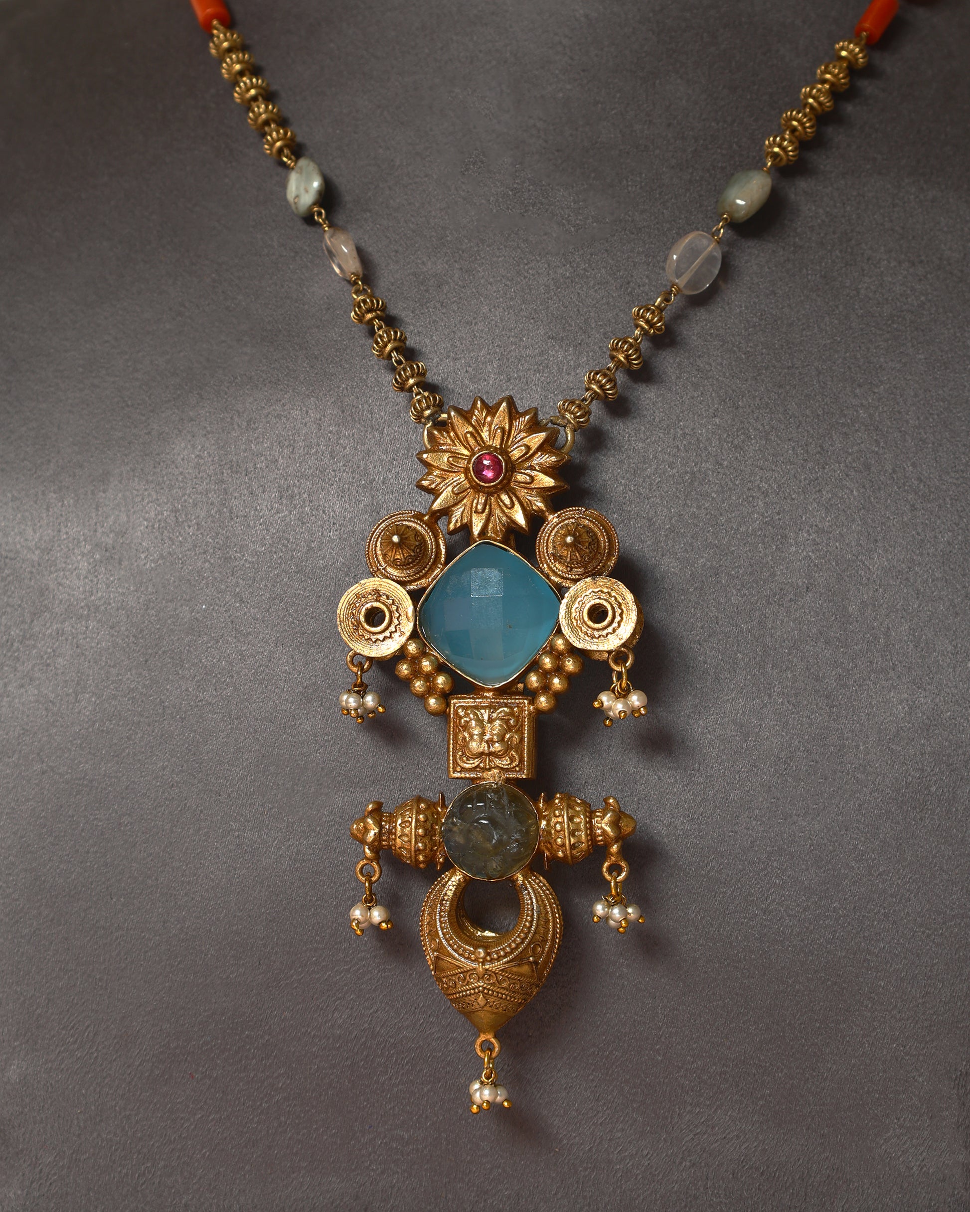 Handcrafted Necklace in 92.5 Silver with Calcedonia, Pearls
